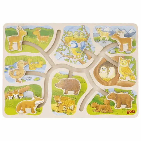 "Who belongs to whom?" On this wooden sliding puzzle the mother animals can join their offspring.